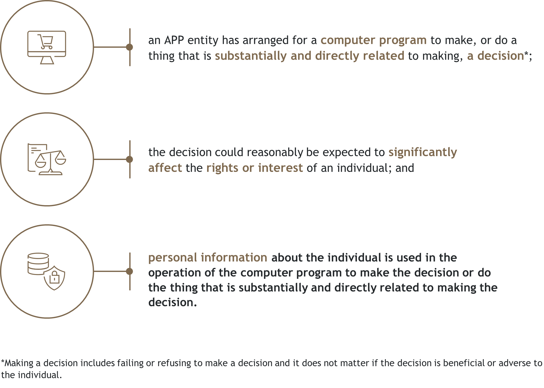 Only decisions that are made entirely by a computer program – such as AI or ADM systems – or those that are substantially made or influenced by a computer program must be included in an entity’s Privacy Policy.