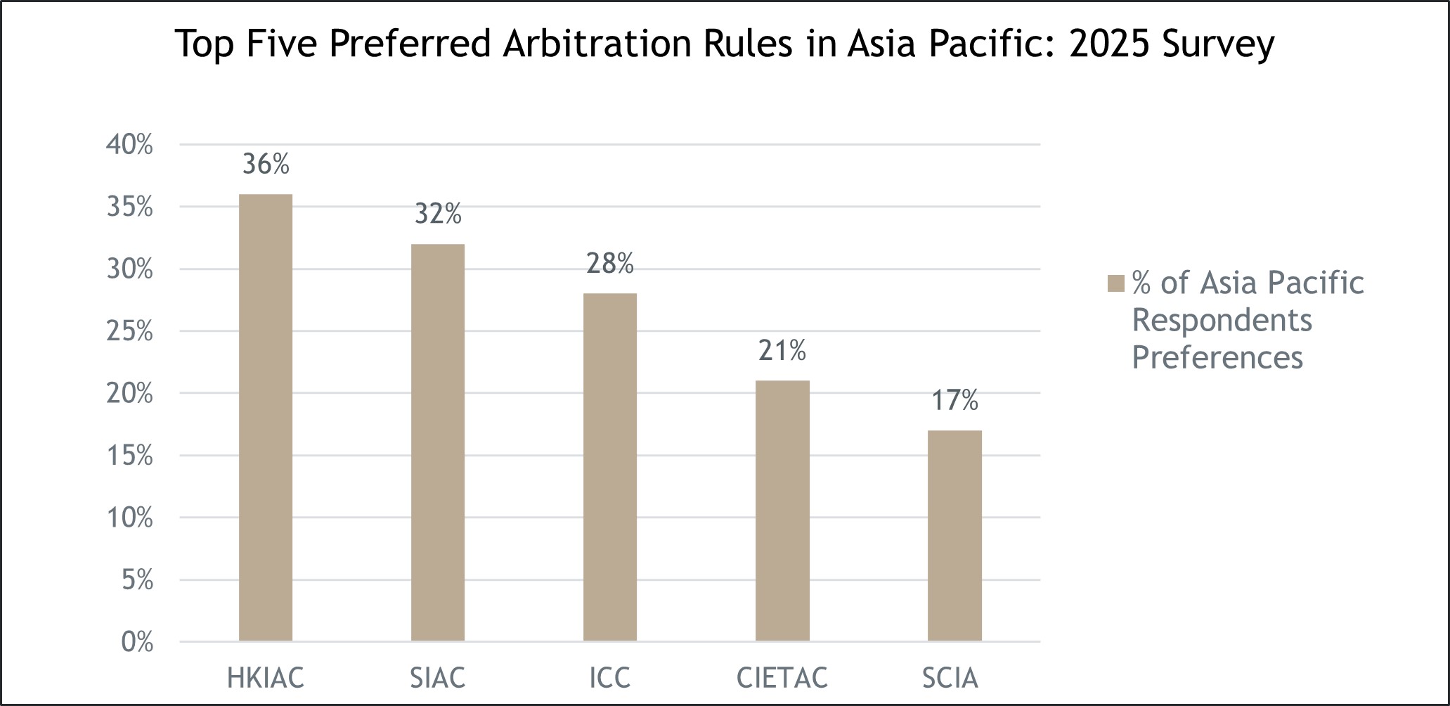 - HKIAC Rules are the most favoured in the Asia Pacific region followed closely by SIAC Rules.